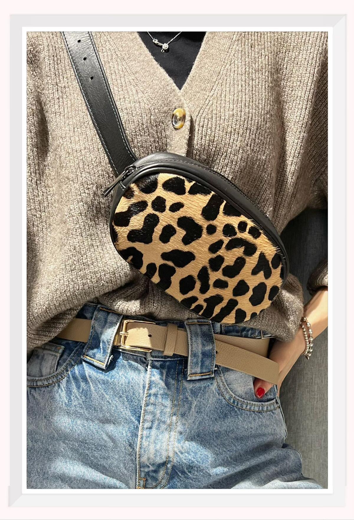 Brixton Cross Body Sling Bag - Sand Leopard Print - Large