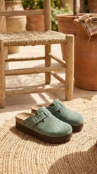 Dark Sage Wedged Clogs Mules