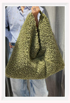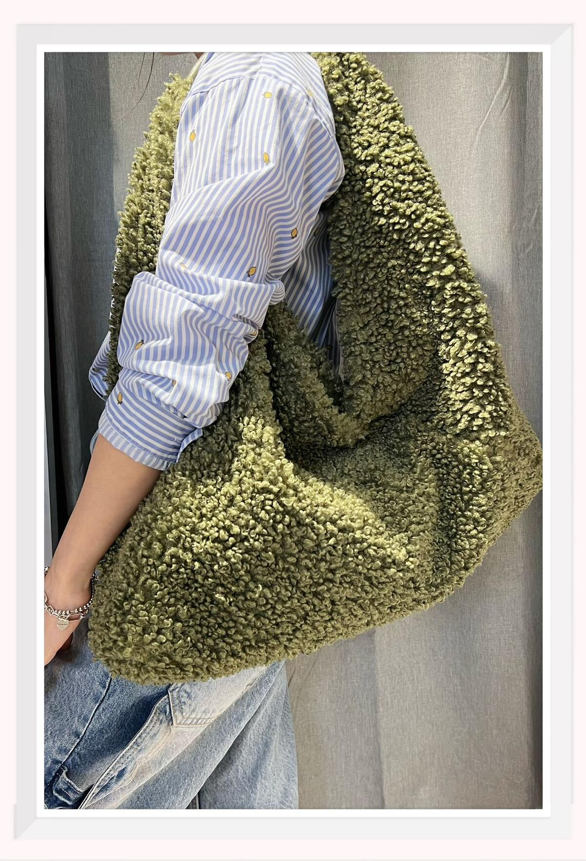 Faux Shearling Slouchy Shoulder Bag – Kaki