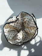 Oversized double layer polka dot scrunchie. In ecru with black edging and black polka dots.