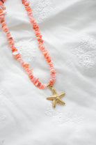 Boho-Inspired 18k Gold Plated Starfish Necklace with Pink Beaded Chain – 45cm