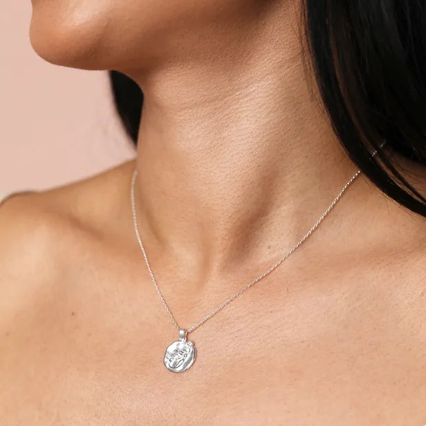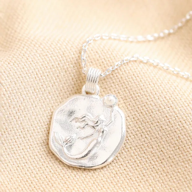Mermaid Coin Pendant Necklace in Silver