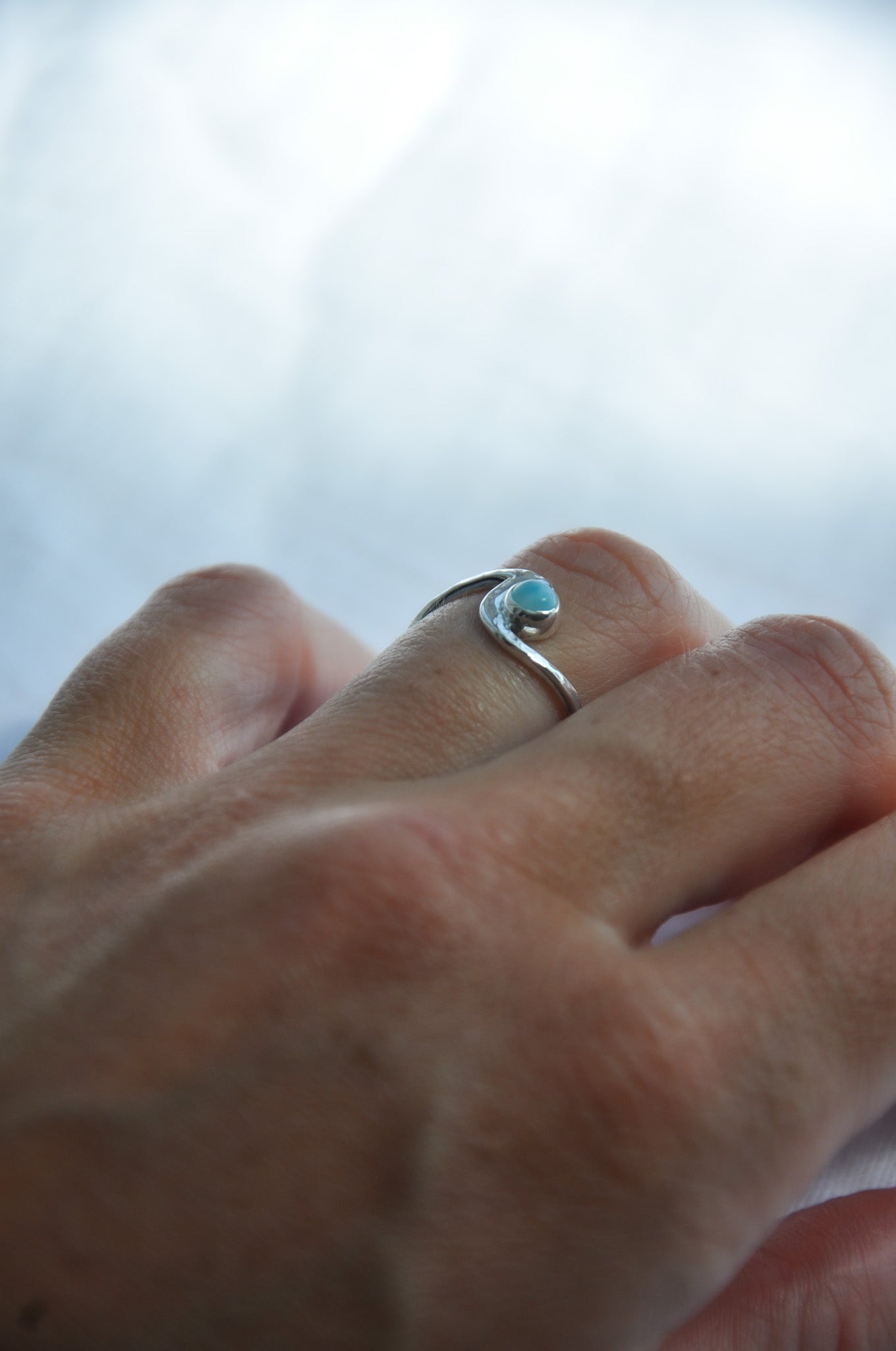 Sterling Silver Hammered Wave Larimar Ring – Handmade & Ocean-Inspired