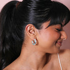 Teal Stone Hammered Hoop Earrings in Silver