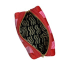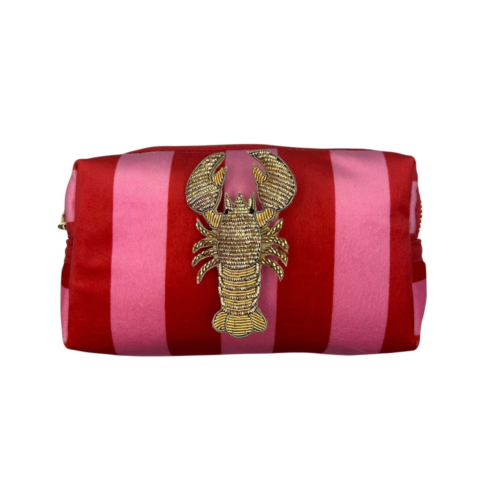 Brighten up your routine with this eye-catching pink and red striped velvet make-up bag, finished with a bold red trim and a fun, detachable Lobster brooch. Whether you leave the pin on the pouch or wear it on your jacket, it’s a playful accessory that offers style and versatility in one.
