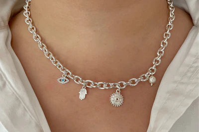 Ersa Silver Chunky Chain Charm Necklace