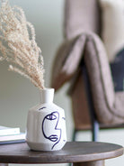 The Norma Vase by Bloomingville has an original black cubist outline on its white stoneware surface. It looks like a canvas, which guarantees an artistic touch in whatever room you place it in.