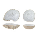 Beautiful clam style shell bowl. The beige and raw surface is a beautiful contrast to the white glaze and contributes to a natural look. The bowls are perfect for jewelry or nibbles