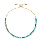 The Valentina Turquoise Howlite Gold Bracelet features striking turquoise howlite stones, set on a gold-plated chain adjustable slider. Its vibrant colour and elegant design make it a bold yet refined accessory, perfect for adding a pop of colour this spring summer!
