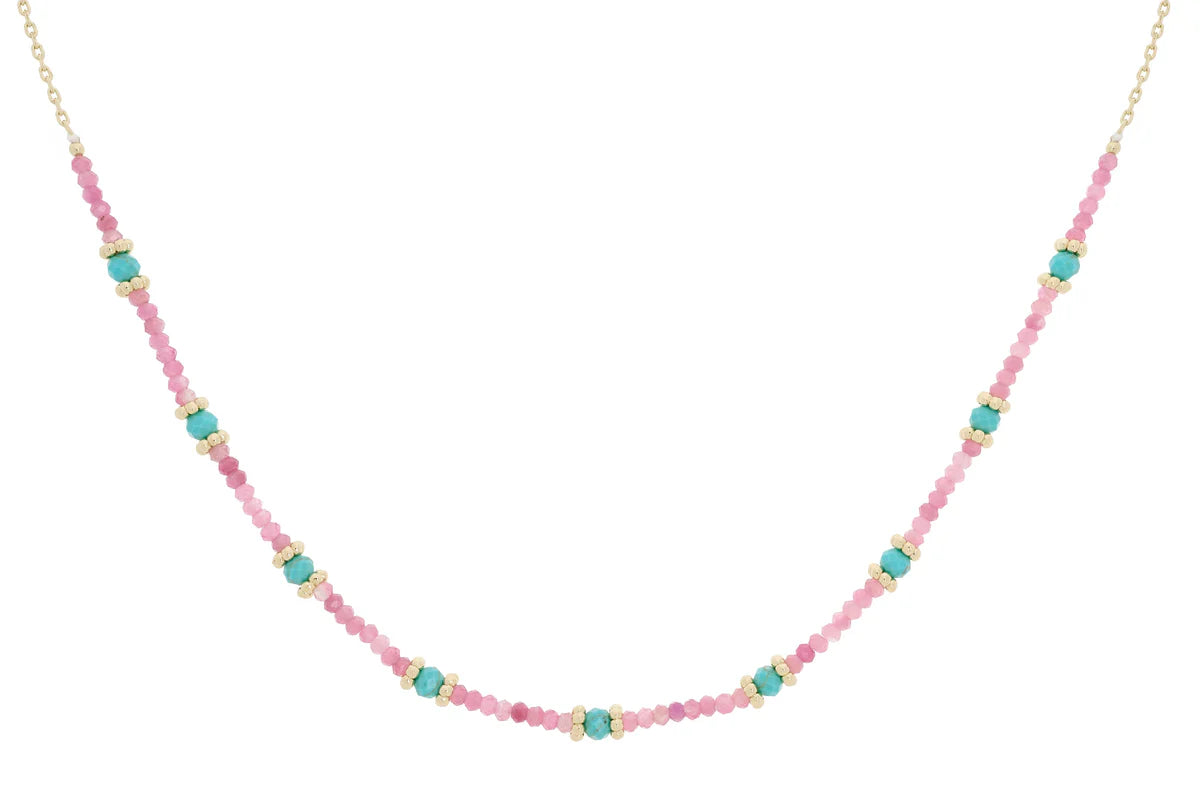 Syros Pink Tourmaline Turquoise Gemstone Gold Necklace