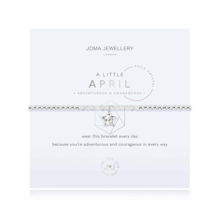 For all April babies, our lovely 'A Little' bracelet radiates birthstone beauty with special rock crystal stones and a gently hammered silver star charm.