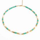 Dopamine Beaded Green Cube and Gold Pearl Necklace