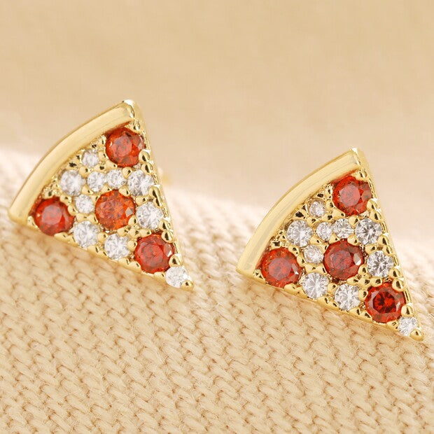 Crystal Pizza Stud Earrings in Gold
