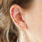 Add a touch of effortless boho charm to your jewellery collection with these gold-plated huggie hoop earrings. Designed for a stylish, curated ear stack, these delicate yet eye-catching earrings are the perfect everyday accessory.