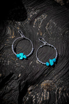 Silver Turquoise Beaded Hoop Boho Earrings