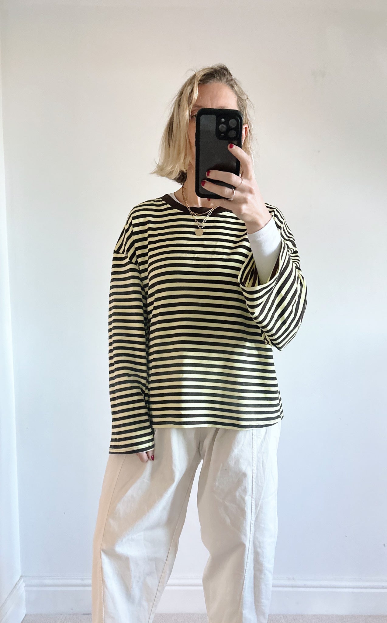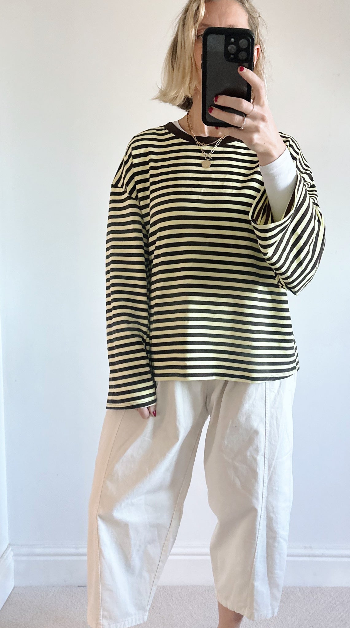Mustard and Ecru Towelling Long Sleeve Top