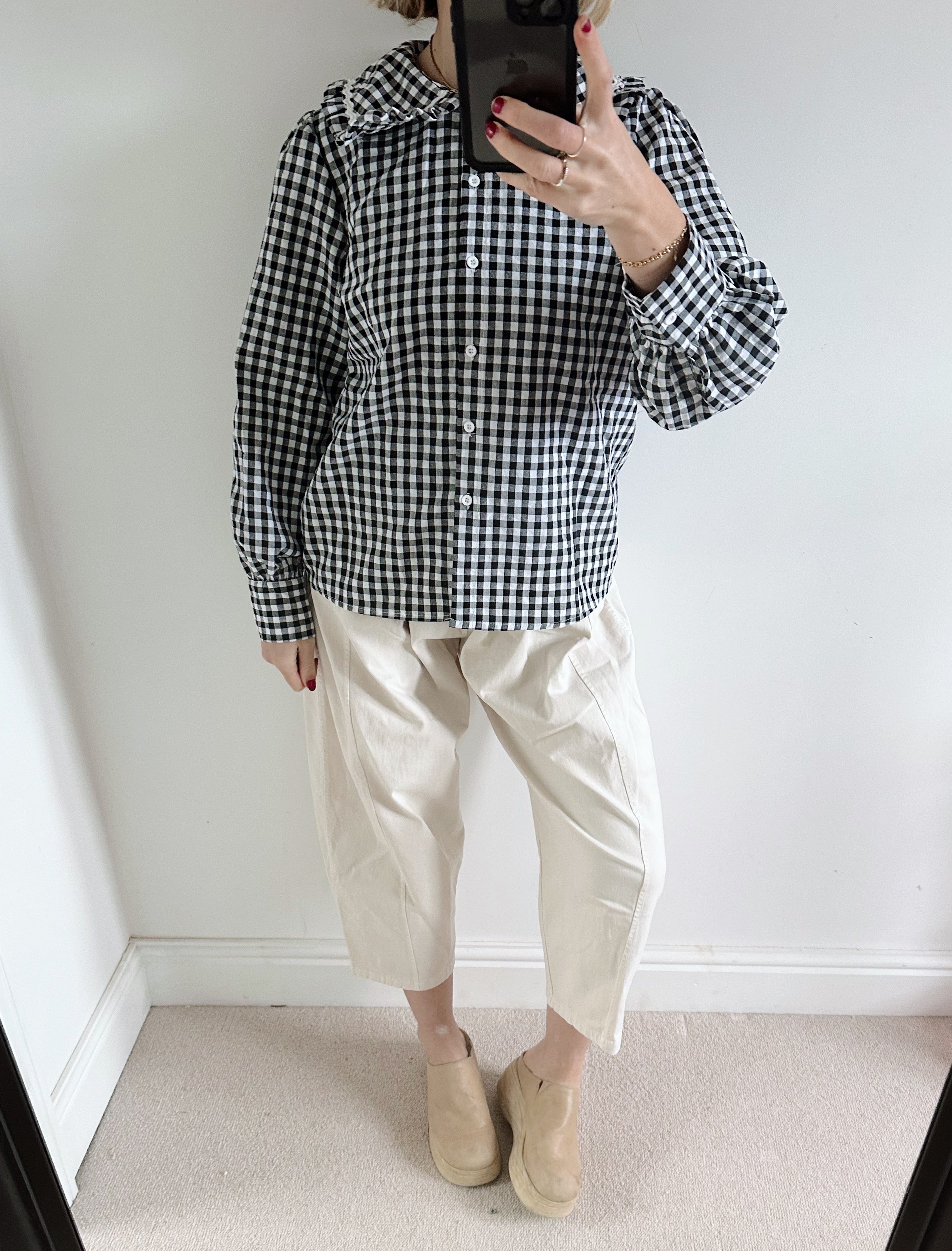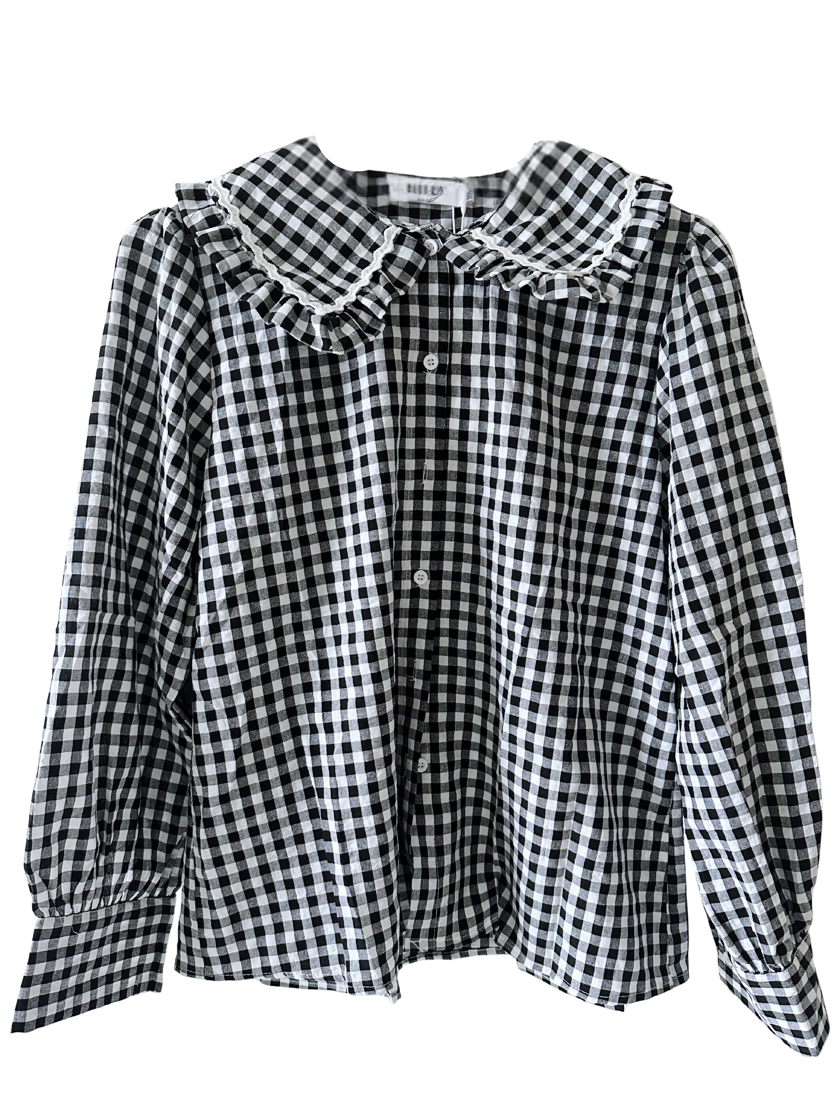 Black and White Gingham Check Peter Pan Collar Shirt