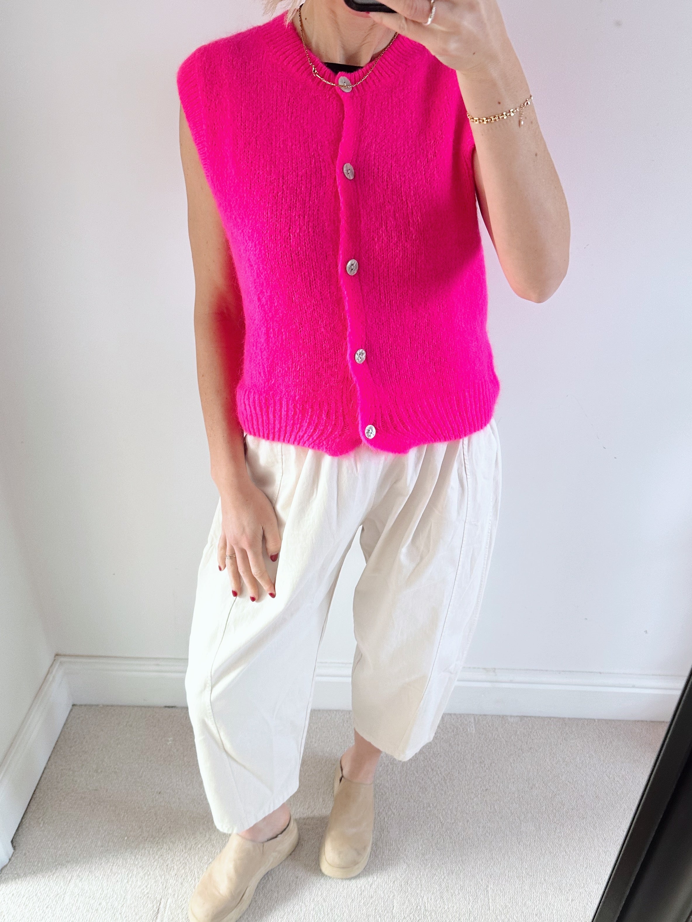 Hot Pink Sleeveless Cardigan with Front Buttons in Super Soft Solid Kid Mohair