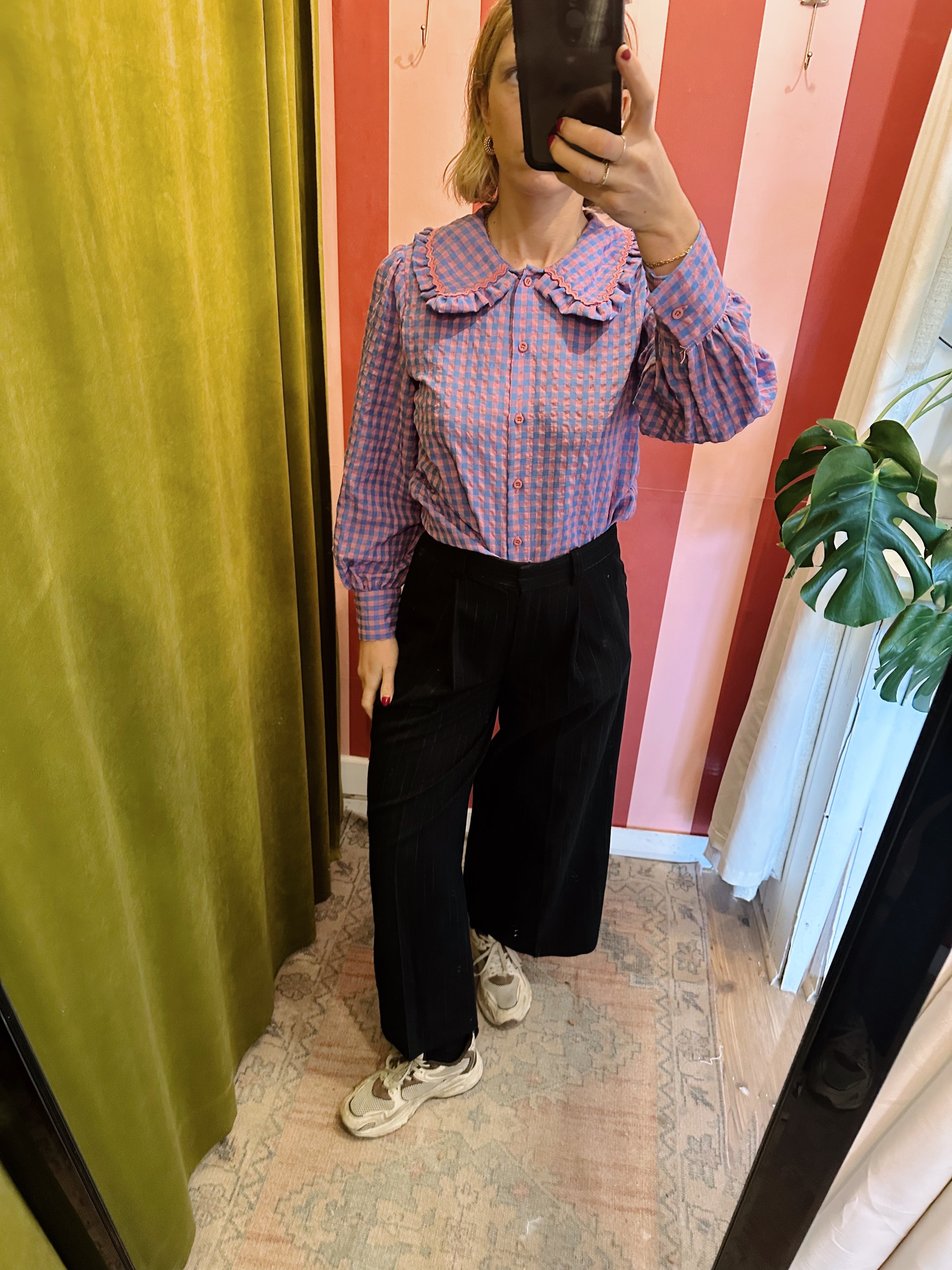 Blue and Pink Gingham Shirt with Peter Pan Collar