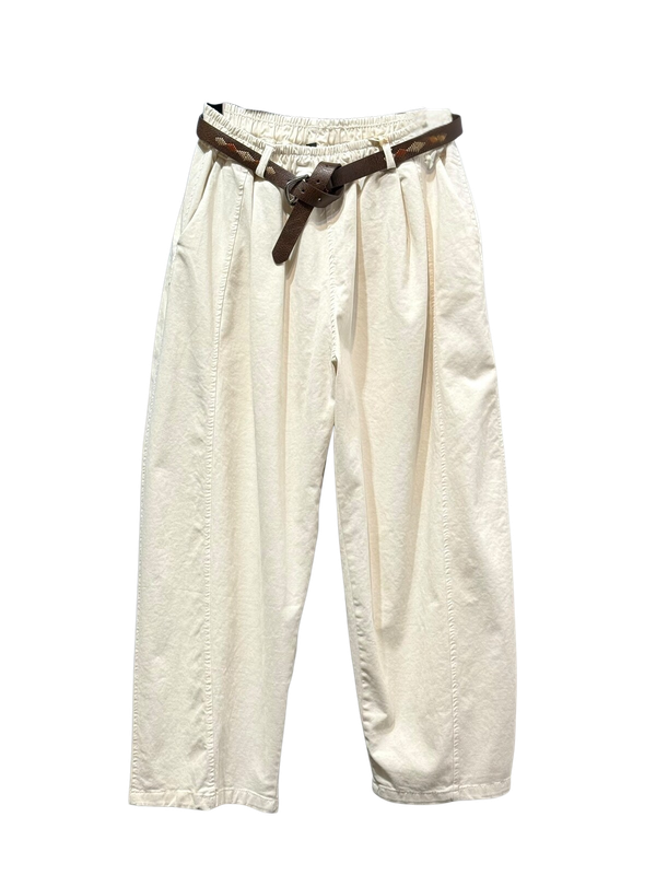 Barrel Leg Ecru Trousers With Belt