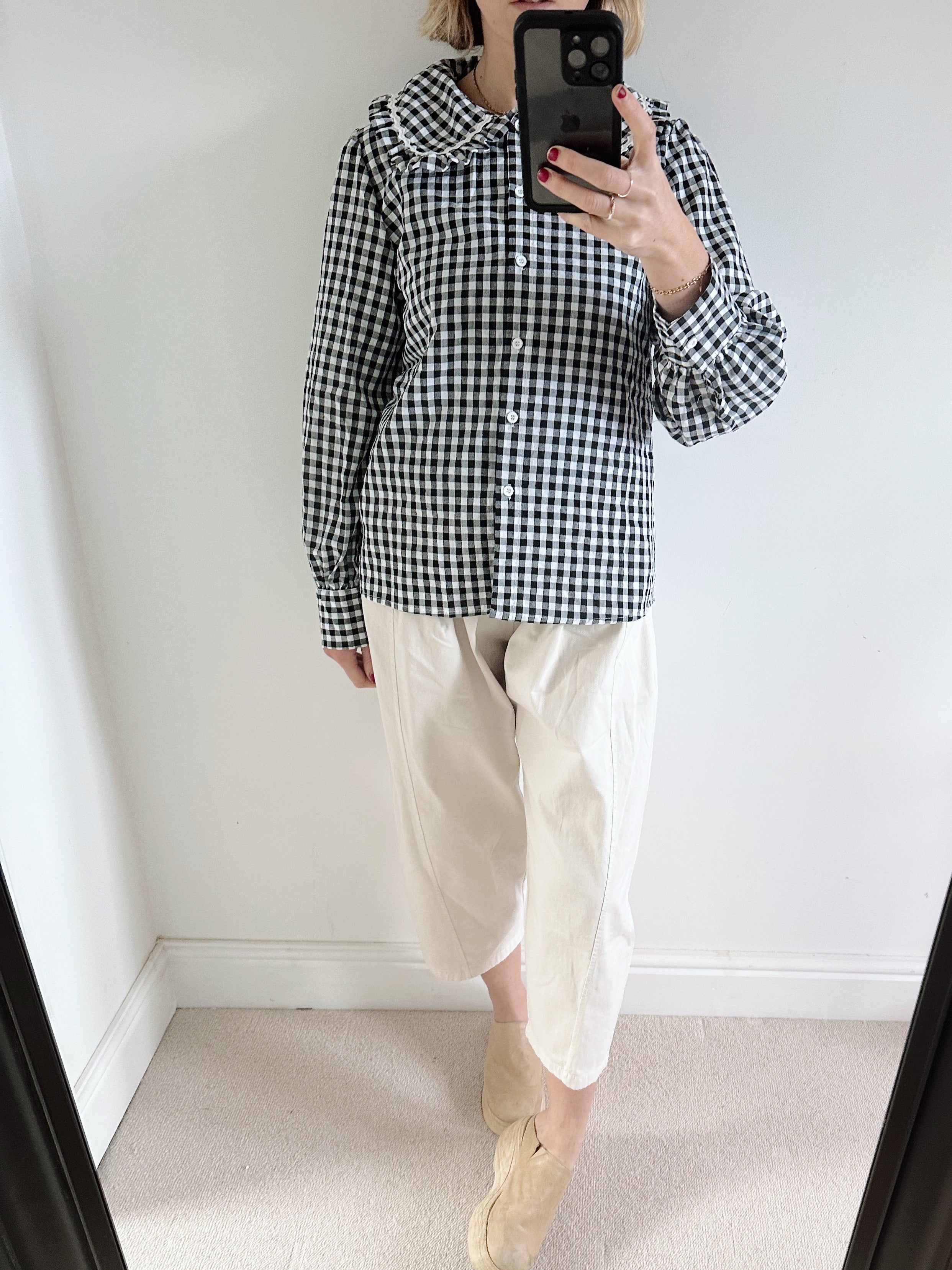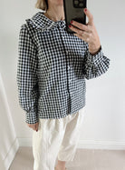 Black and White Gingham Check Peter Pan Collar Shirt