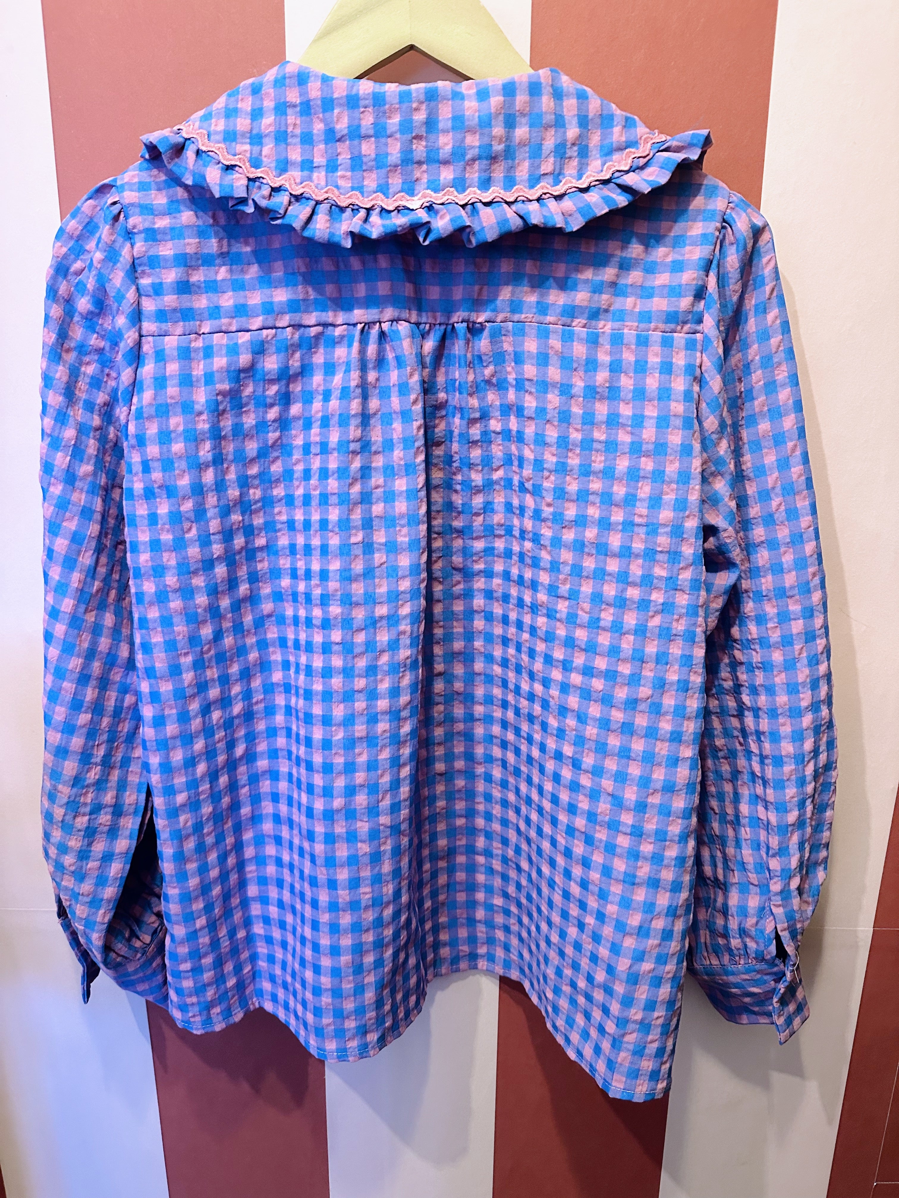 Blue and Pink Gingham Shirt with Peter Pan Collar