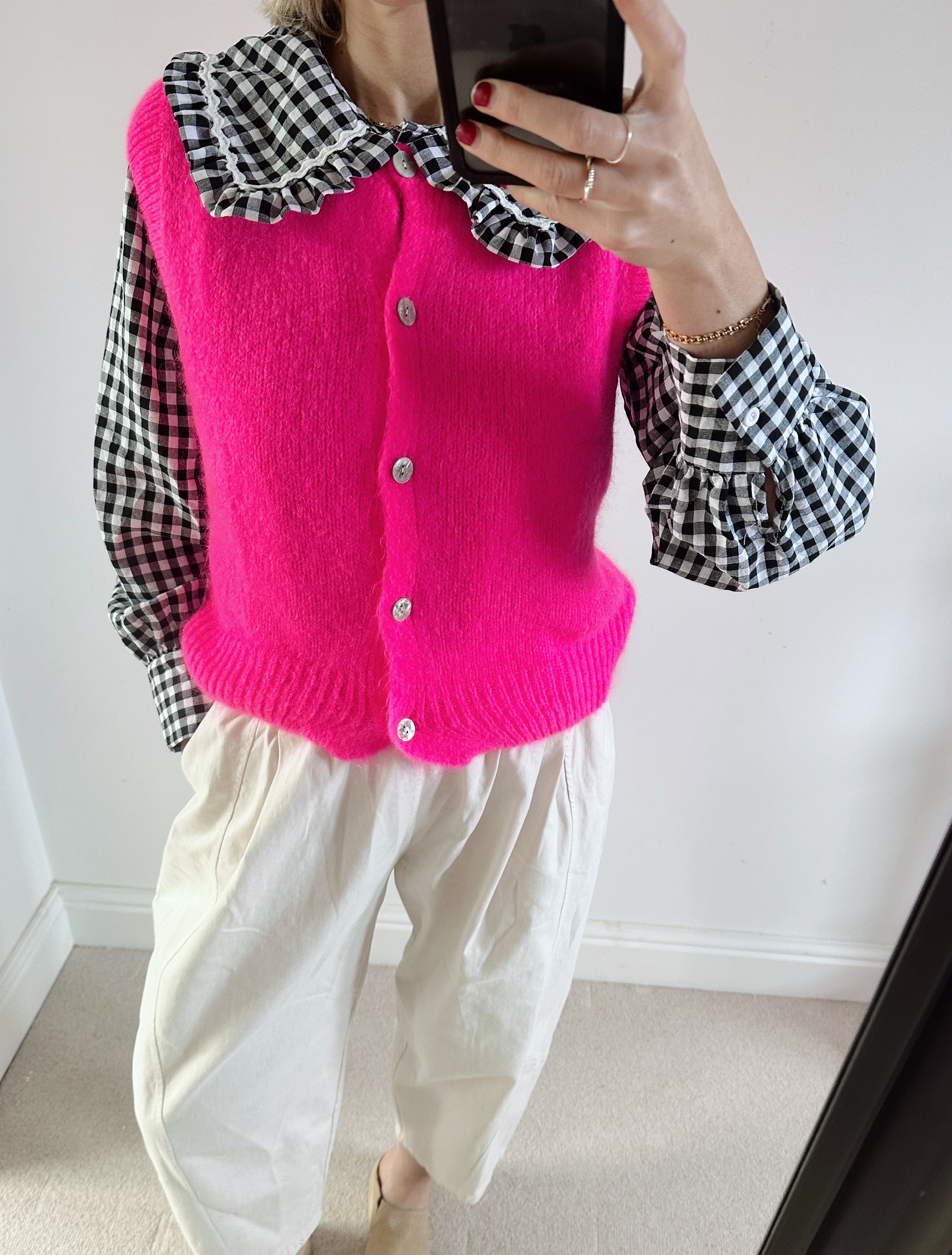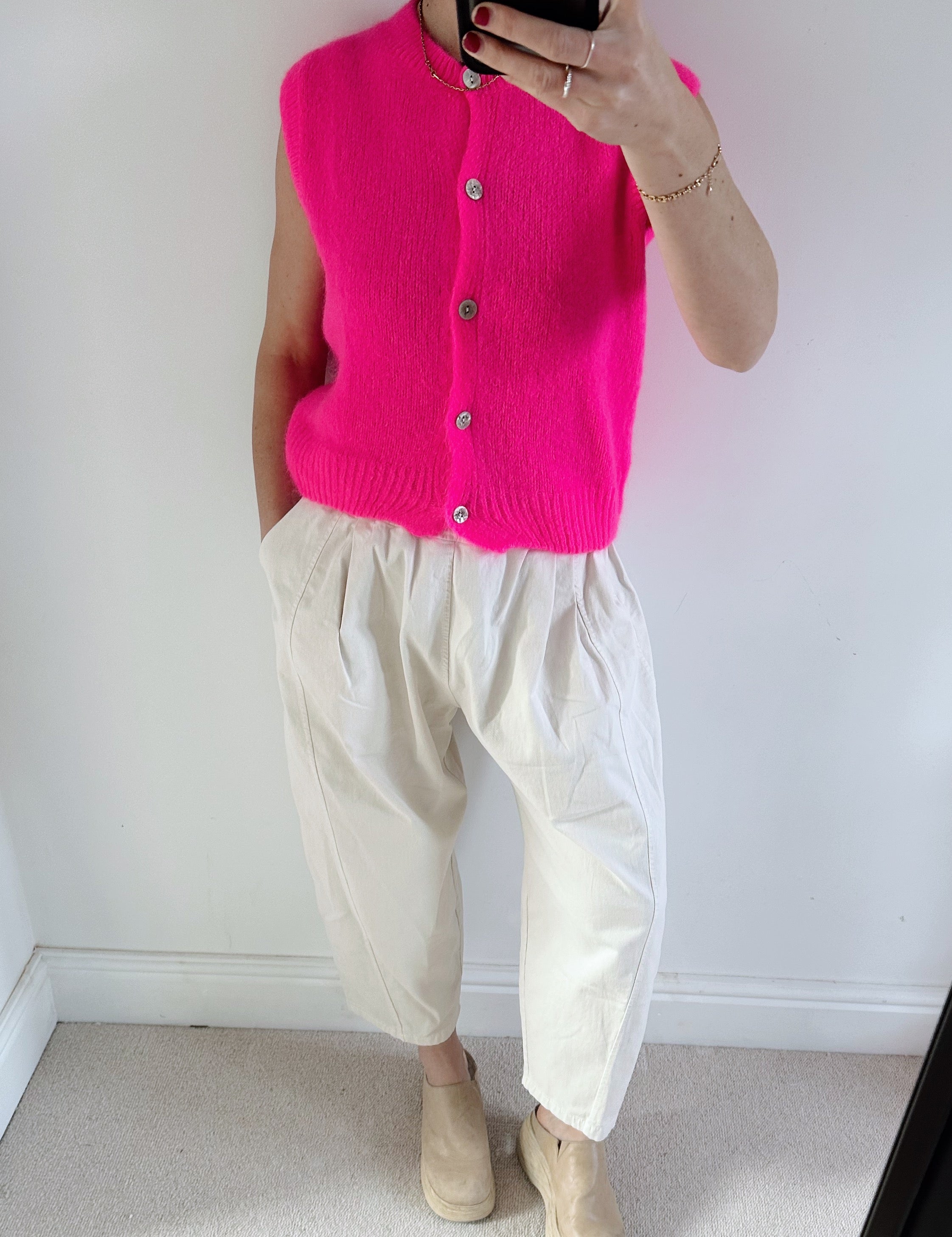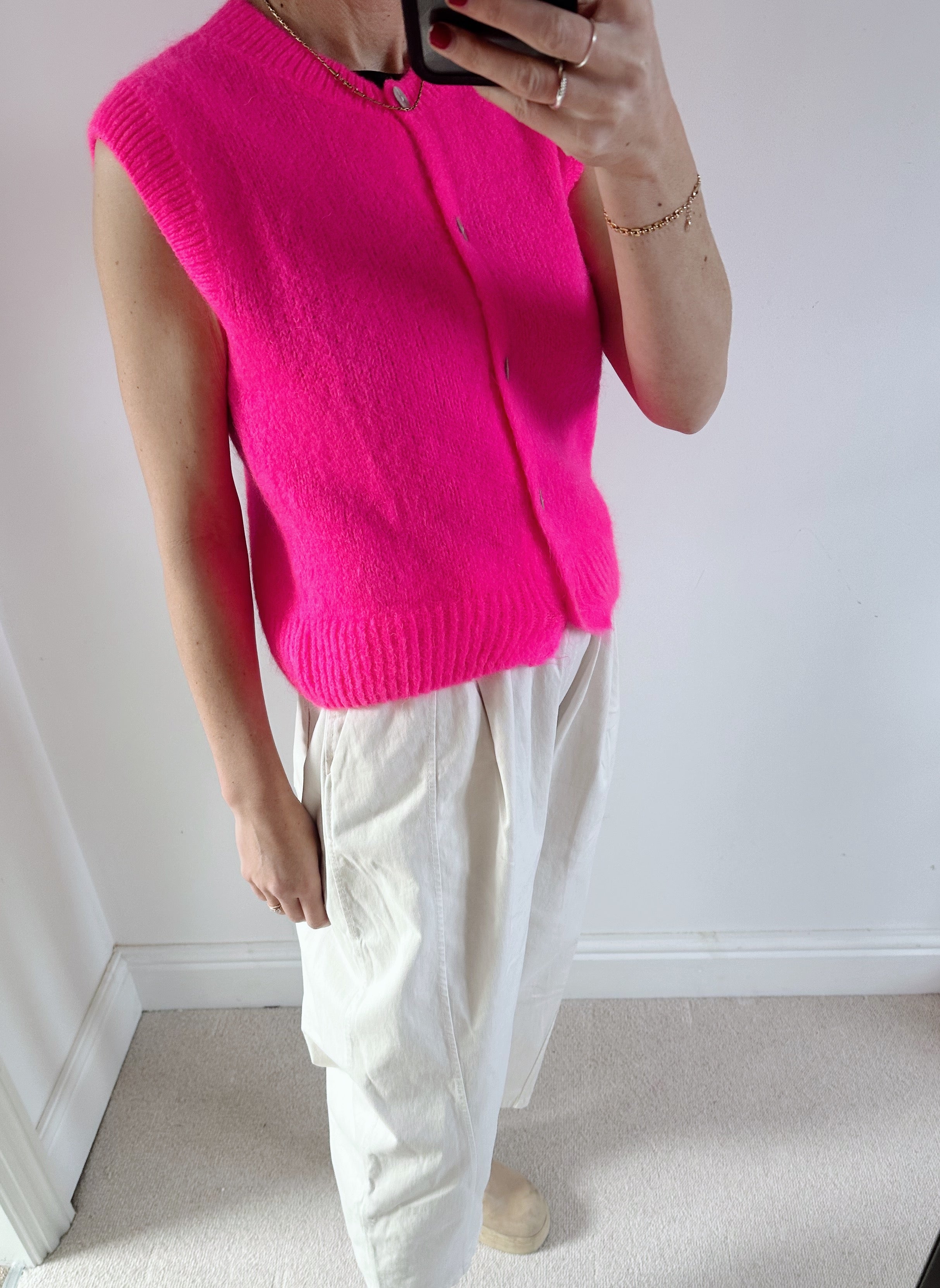 • Hot neon pink sleeveless cardigan