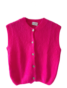 Hot Pink Sleeveless Cardigan with Front Buttons in Super Soft Solid Kid Mohair
