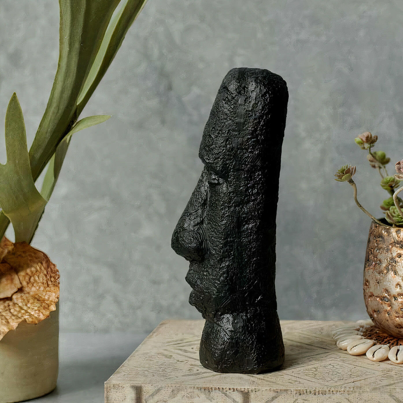 Discover our Talos sculpture in black - a striking piece full of personality. This Easter Island-inspired sculpture is the perfect addition to your surfaces, instantly adding intrigue. Mix and match it with our other heads to fill your shelves with even more character.