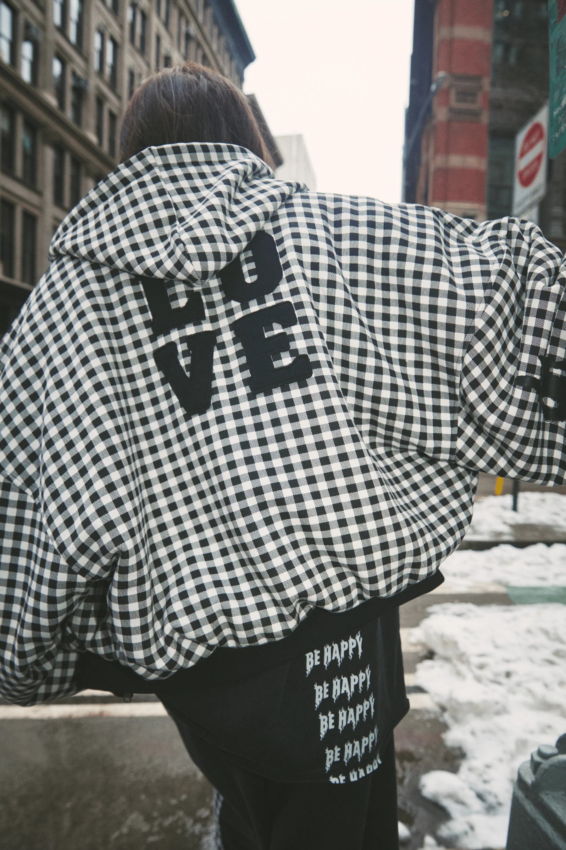 The Sabbi Be Happy Gingham Padded Bomber is your ultimate statement winter layer. Designed in bold black and white gingham, this oversized padded jacket combines playful attitude with cosy warmth for off-duty city style.