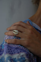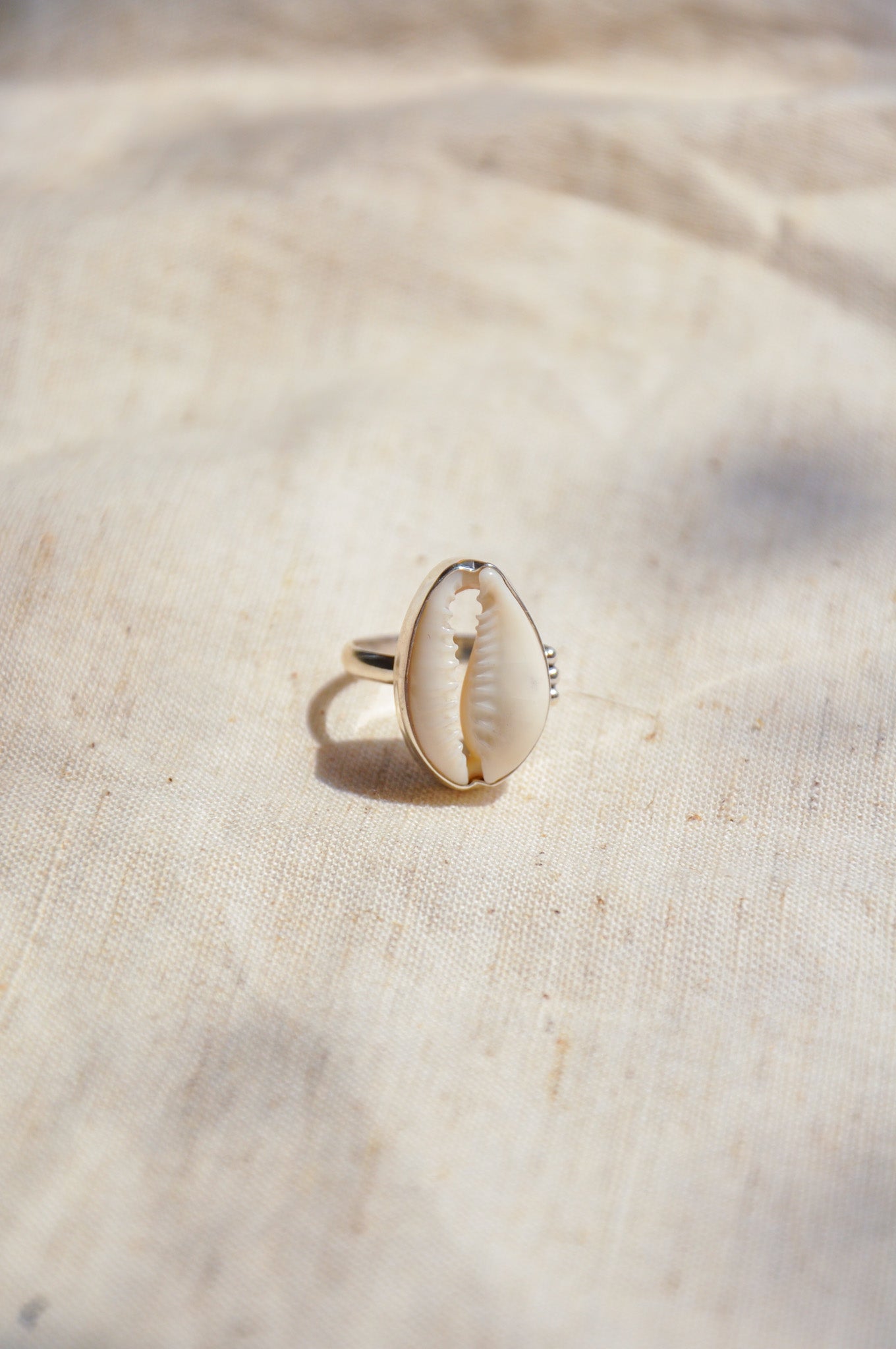 Side Dot Silver Cowrie Ring