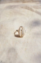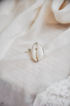 Crafted with care, this Side Dot Silver Cowrie Ring showcases a 925 sterling silver band adorned with a beautiful cowrie shell. Symbolic of the ocean's protector and feminine energy, the handcrafted shell brings a touch of love and beauty to any bohemian look. Choose from a variety of sizes to complete your sea-inspired ensemble.