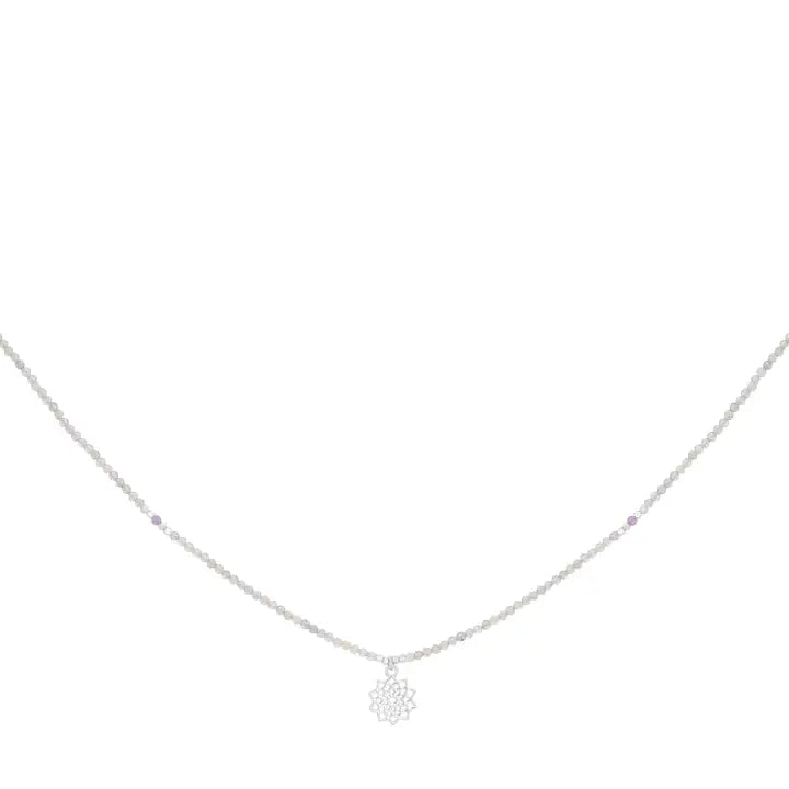 Boho Betty Labradorite and Amethyst Silver Crown Chakra Necklace