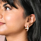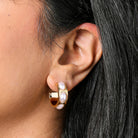 These elegant hoops feature a wide base adorned with delicate dotted edging around each oval pearl, creating a timeless and sophisticated look. Fastened with butterfly backs and finished with sterling silver posts, they offer a comfortable, hypoallergenic wear.