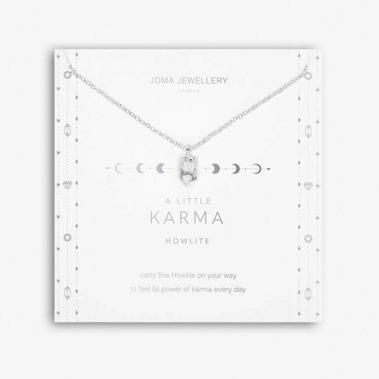 Our Affirmation Crystal A Little 'Karma' Necklace features a sparkling Howlite pendant, known for its wonderful calming properties. The necklace is wrapped around an elegant card, stamped with a description of the stone's powers and a sweet sentiment. Perfect for every crystal-loving girl in your life.