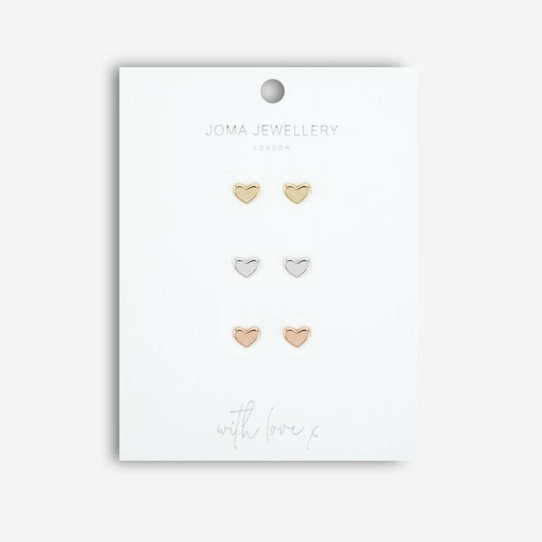 These Heart Studs showcase three stunning pairs of earrings, letting you switch your jewellery to suit every mood or outfit. As always, our Florence collection mixes silver, gold and rose gold-plating, bringing something new and fun to your jewellery selection.