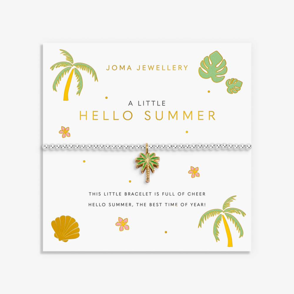A sweet new chapter of A Littles has landed. Bursting with bows, croissants, cherries, and effortless charm for every member of your girl gang, say hello to Joma Jewellery’s A Little Vibes Collection. Beautifully beaded and crowned with a mini palm tree charm, Joma Jewellery’s A Little Vibes 'Hello Summer' Bracelet in Silver Plating is wrapped around a colourful stylised card, illustrated with adorable matching motifs. It's a little piece of joy, ready to be unwrapped.