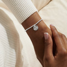 Make your loved one's wrist stack shimmer with our Star Sign A Little Bracelets. Now with an elevated design, our enchanting Star Sign A Little 'Cancer' Bracelet In Silver Plating is threaded with shining silver-plated beads and wrapped around a pretty zodiac-printed card. Crowned with a detailed coin charm representing the sign's emblem - the crab - and dotted with Cubic Zirconia crystals, this stellar style will make a wonderful gift for any starry-eyed birthday girl.
