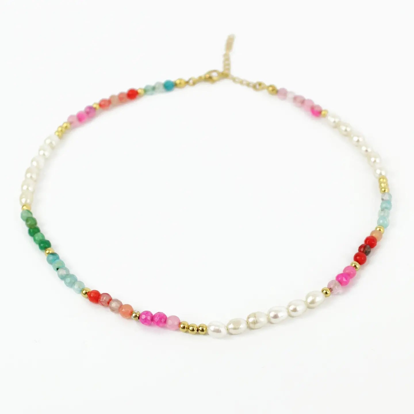 Colourful necklace with semi-precious stones and freshwater pearls