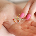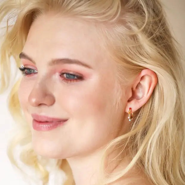Dimensions outer width - 17mm inner width - 11mm height - 15mm x depth 2mm Made from 14ct gold plated brass, enamel, sterling silver posts