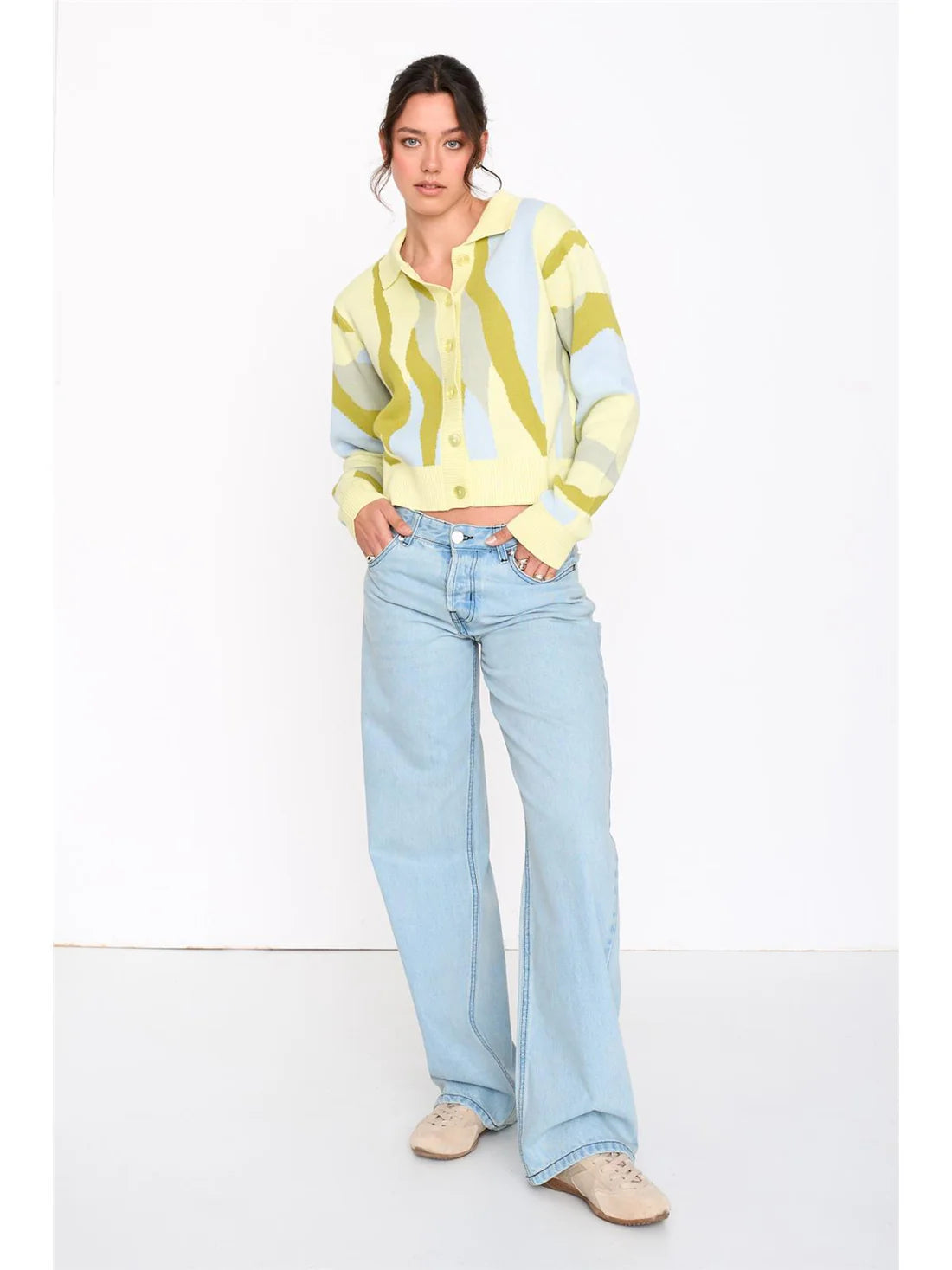 Daisy Stripes Combed Cotton Sheer Pop Socks in Green