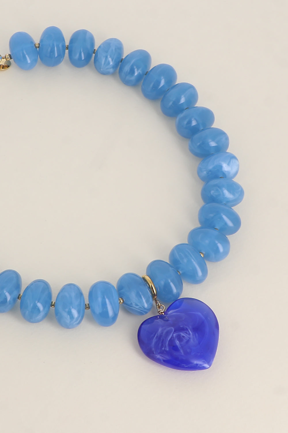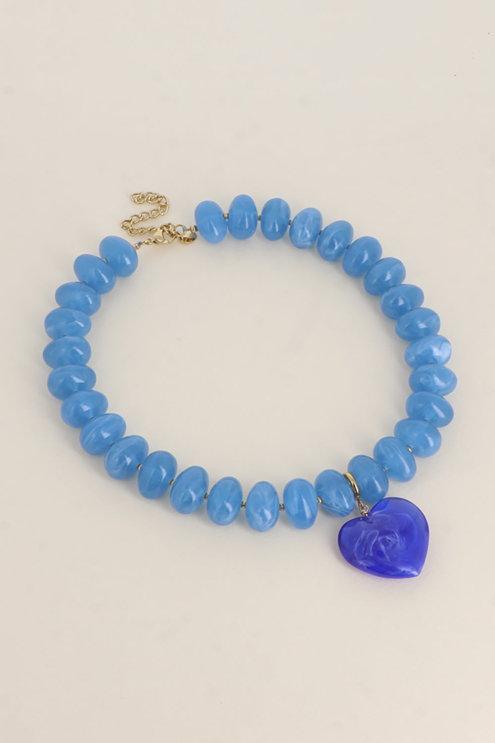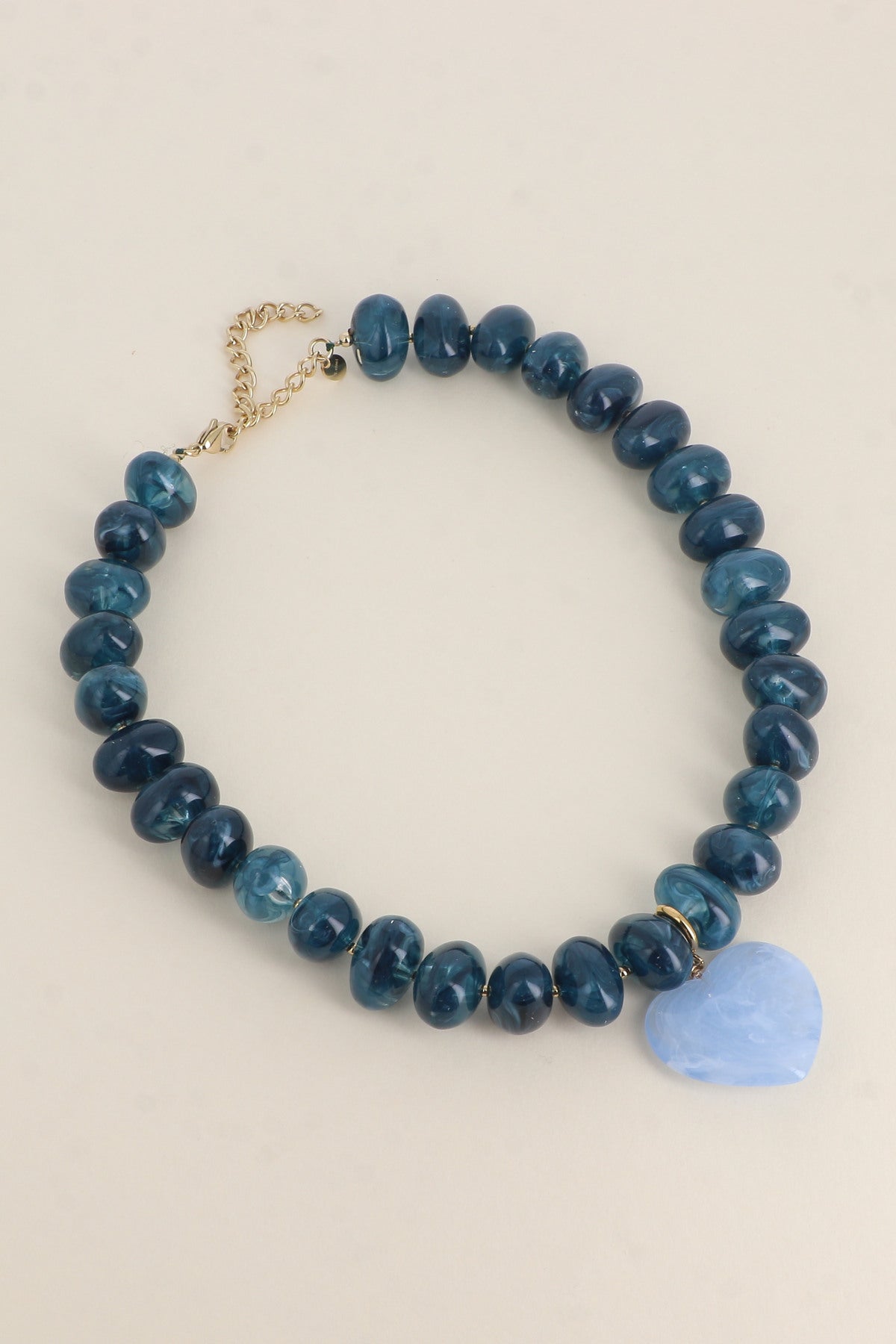 Marine Blue Resin Beaded Dopamine Heart Necklace