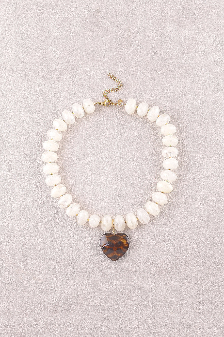 White and Tortoise Resin Beaded Dopamine Heart Necklace