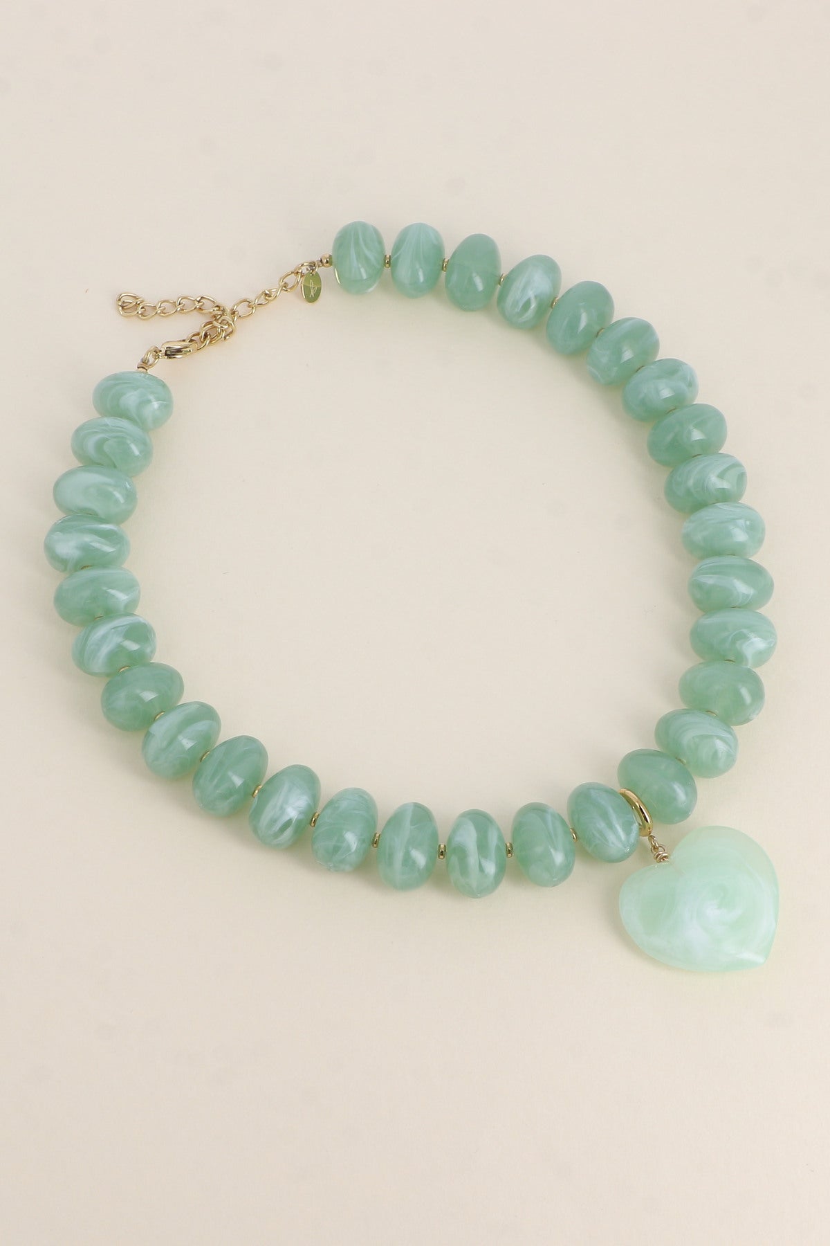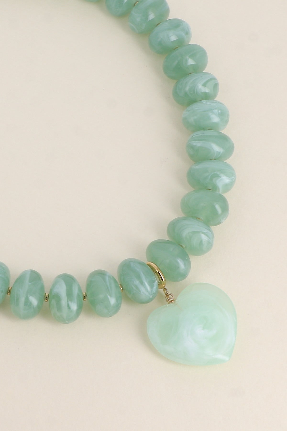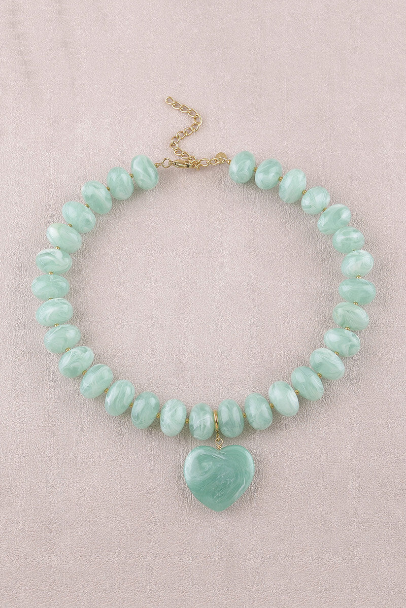 Aqua Marine Resin Beaded Dopamine Heart Necklace