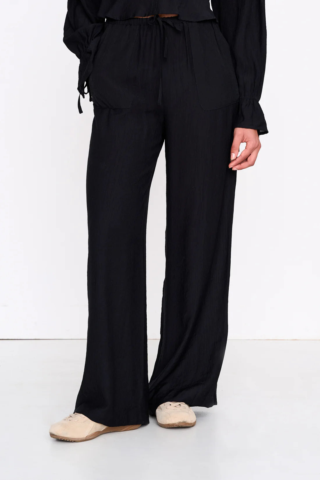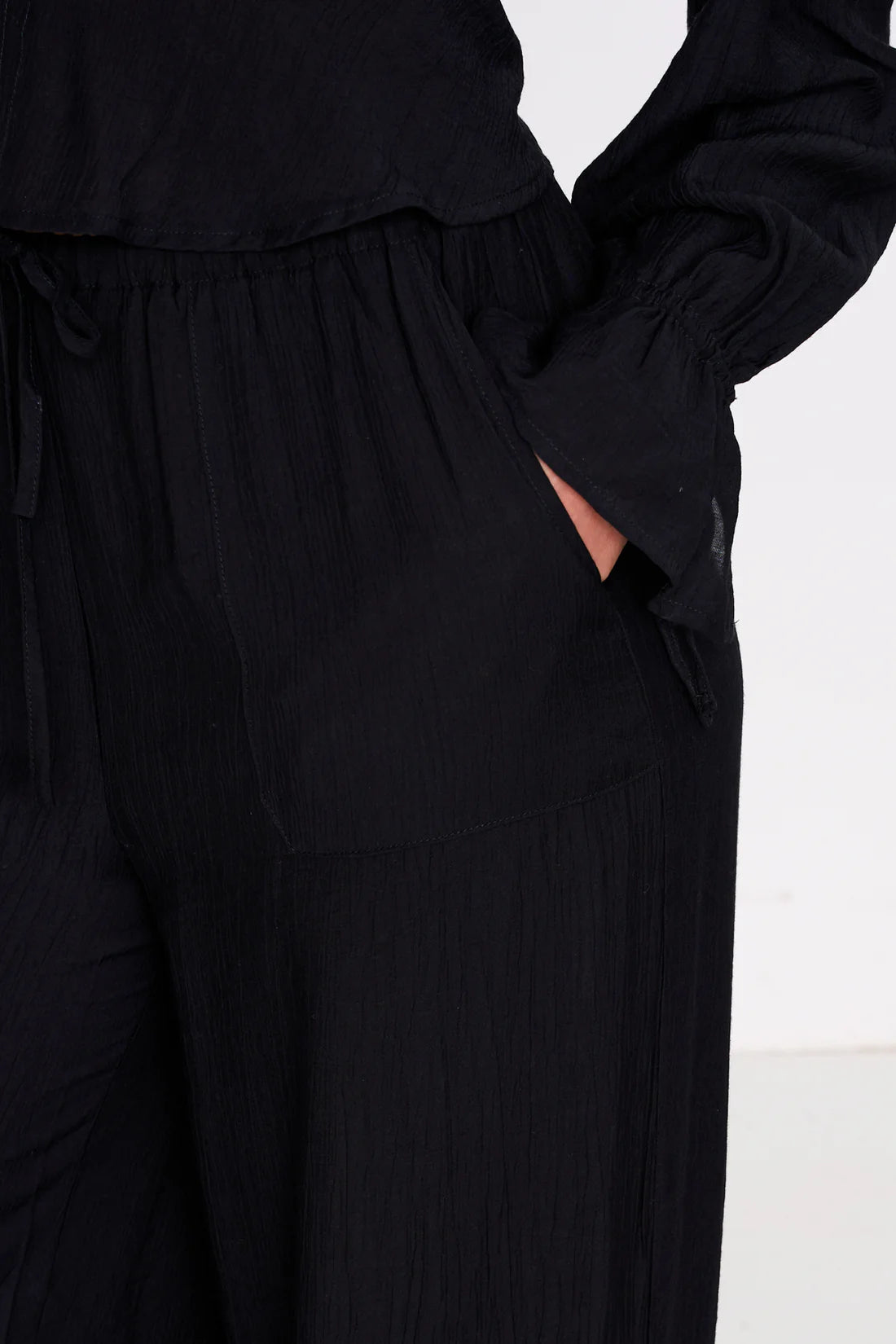 24 Colours brings us these relaxed-fit black trousers, designed for comfort and style. With a drawstring waist and slightly wider leg, they’re the perfect go-to trousers to dress up or down. Pair them with an oversized tee for an effortless everyday look, or team with the matching top for a coordinated co-ord outfit.