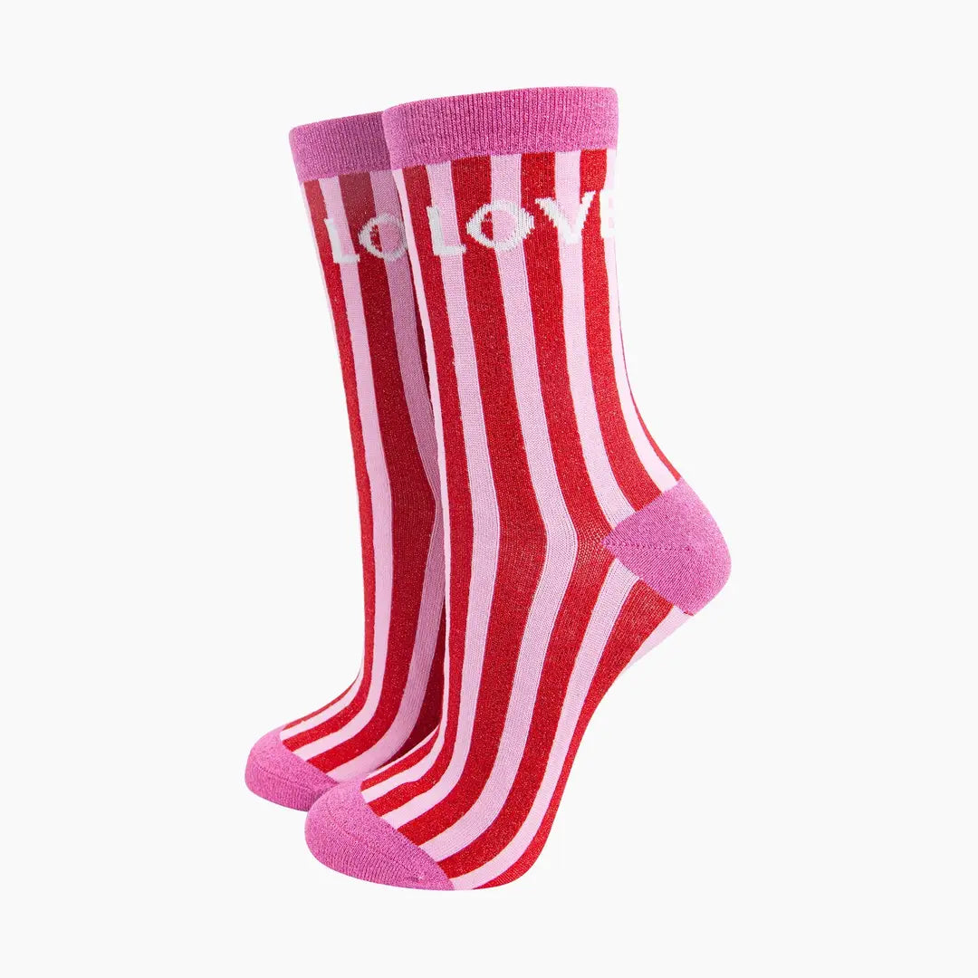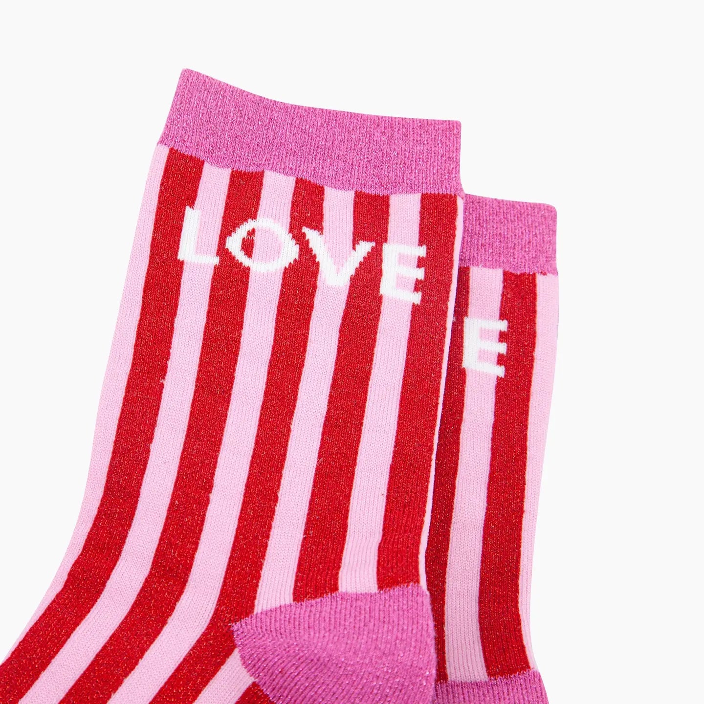 Love Stripes Combed Cotton Glitter Socks in Red/Pink