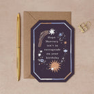 On the perfect birthday, the sun would shine, the birds would sing, and the stars would align. Failing that, at the very least, we “Hope Mercury isn’t in retrograde on your birthday”, as wished in the caption of this astrology birthday card.