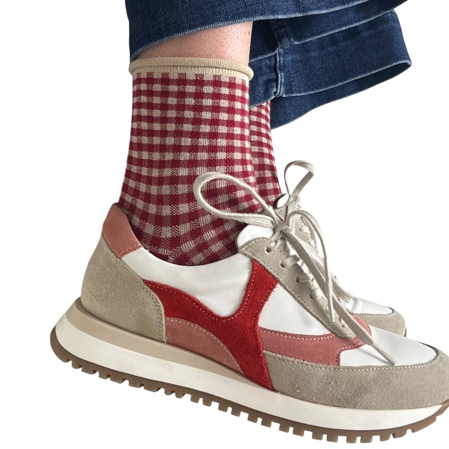 We absolutely love these red gingham socks paired with trainers and jeans – the perfect combination of fun, comfort, and classic style. Their playful gingham print makes them a charming little preset gift idea for anyone who enjoys cheerful, everyday accessories.