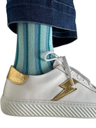 Brighten up your everyday style with this pair of striped socks in refreshing turquoise and blue tones. Crafted for comfort and versatility, these socks feature a soft, breathable cotton blend with just the right amount of stretch.
