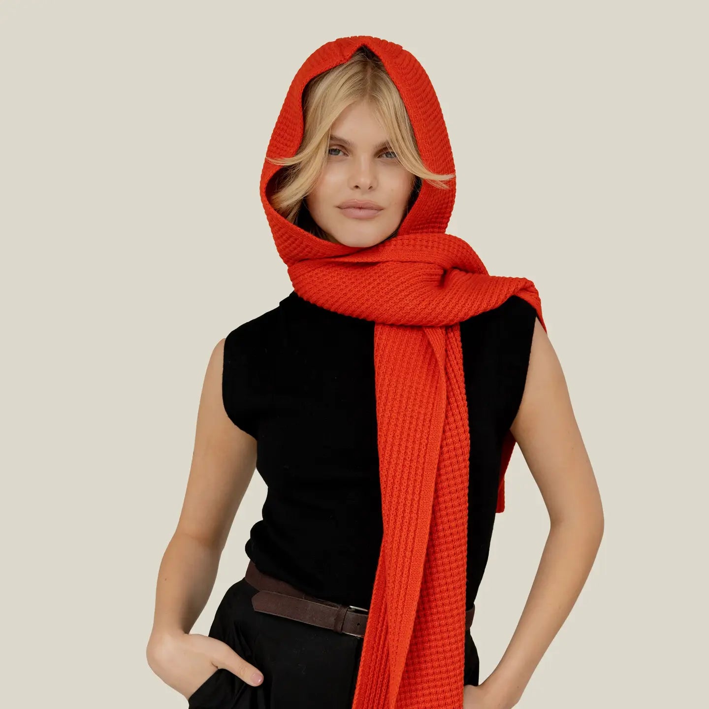 Perfect for frosty morning commutes, relaxed countryside walks, or adventures on the alpine slopes, the hooded scarf is designed to keep you warm and stylish wherever the season takes you.